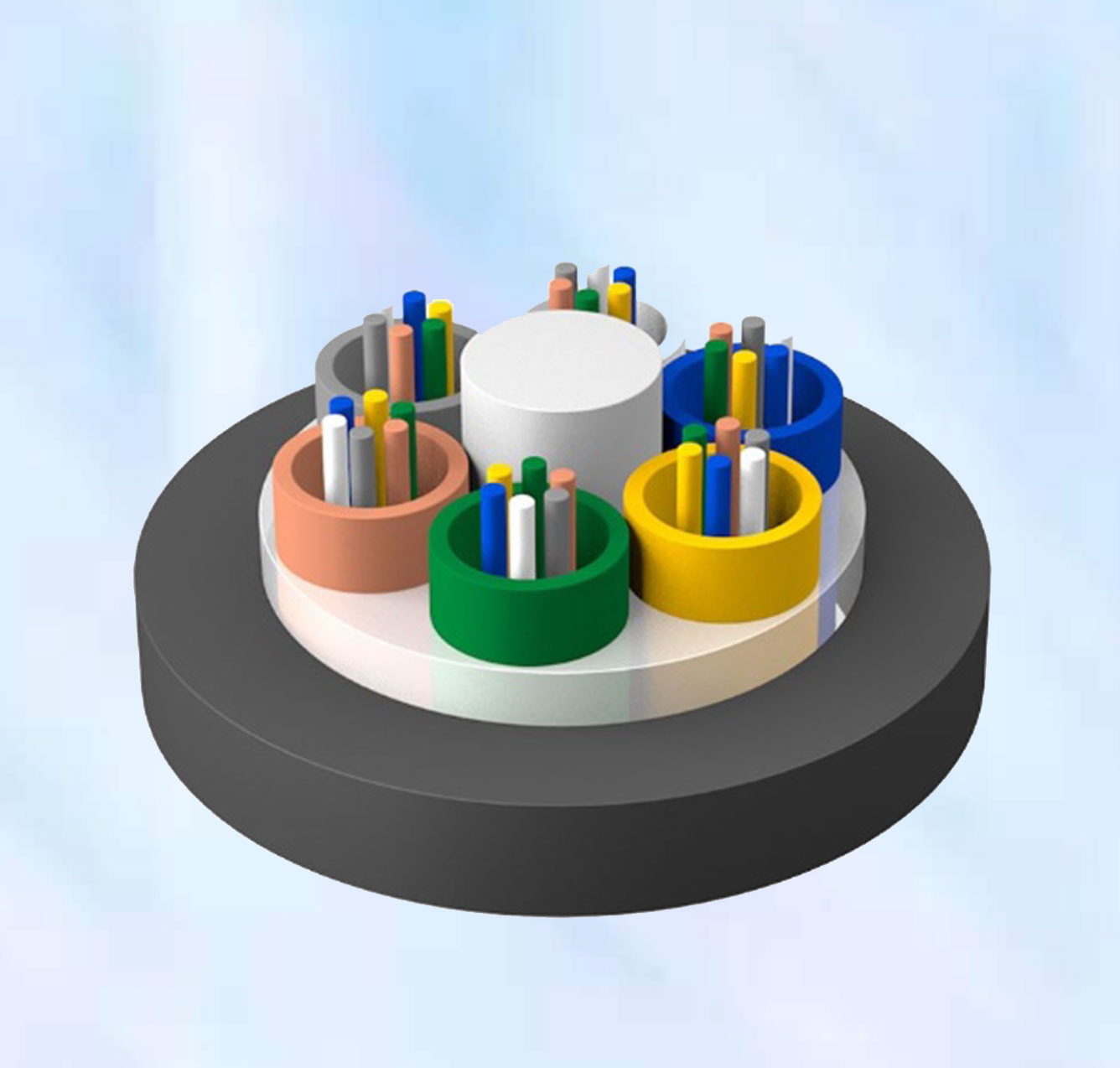 松套層絞式非金屬加強(qiáng)芯非鎧裝光纜 (GYFTY)GYFTY 光纜的結(jié)構(gòu)是將 250μm 光纖套入高模量材料制成的松套管中,松套管內(nèi)填充防水化合物。纜芯的中心是一根玻璃纖維增強(qiáng)塑料(FRP),松套管(和填充繩)圍繞中心加強(qiáng)芯絞合成緊湊和圓形的纜芯,纜芯內(nèi)的縫隙充以阻水填充物。纜芯外擠上一層聚乙烯護(hù)套成纜。